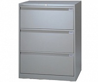 Шкаф Bisley 08 SF3 состоит из трех ящиков с закрытыми боковыми стенками, каждый из которых предназначен для папок A4 или Foolscap (в комплект они не входят). Запираются все ящики одновременно посредством центрального ключевого замка Euro-Locks немецкого производства.