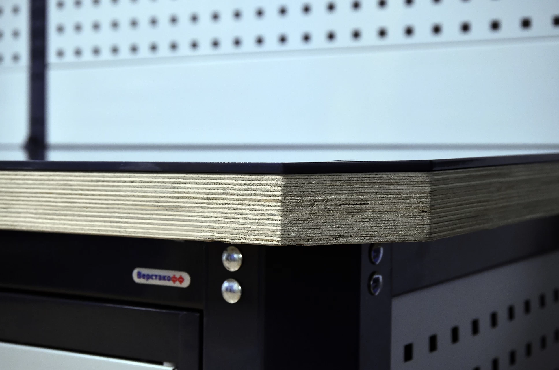Все металлические части верстака защищены антикоррозионным полимерным покрытием, устойчивым к механическим повреждениям и едким химическим веществам.